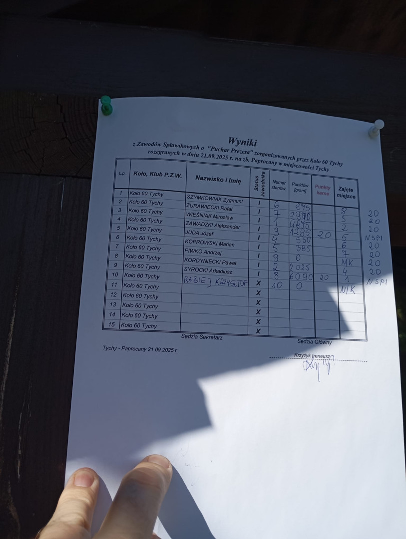 🎣 Zawody Spławikowe – Puchar Prezesa 21.09.2025 🎣